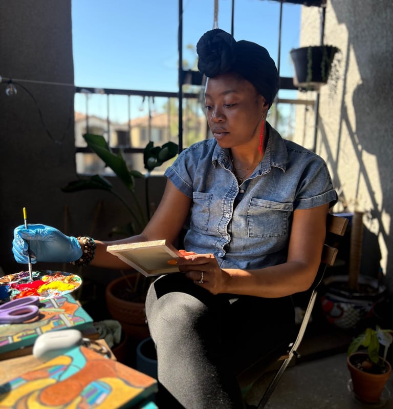 As a multidisciplinary visual artist, Fatima Sow works across painting, wood assemblage, and photo-collage to explore spirituality, relationships to nature, and the amplification of African Diaspora and Black communities. My practice centers on history and literacy as vital tools for cultural preservation, remembrance, and connection.